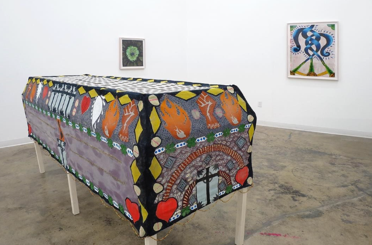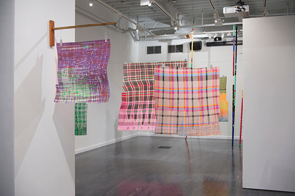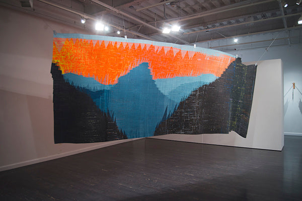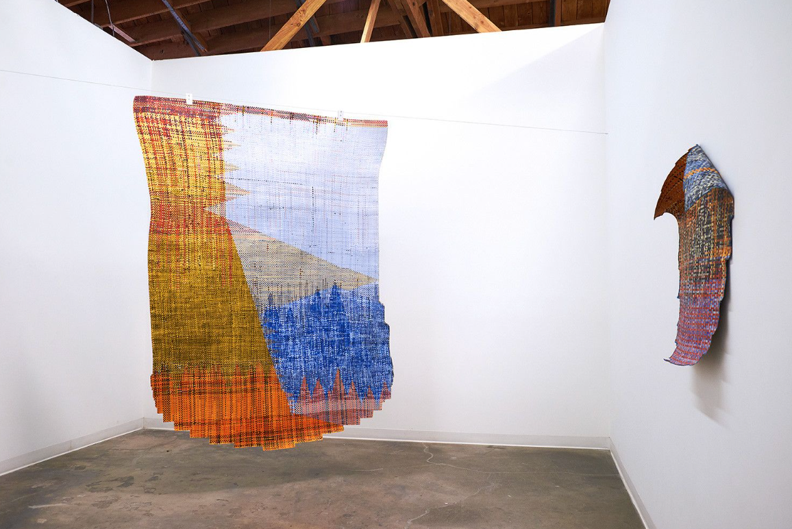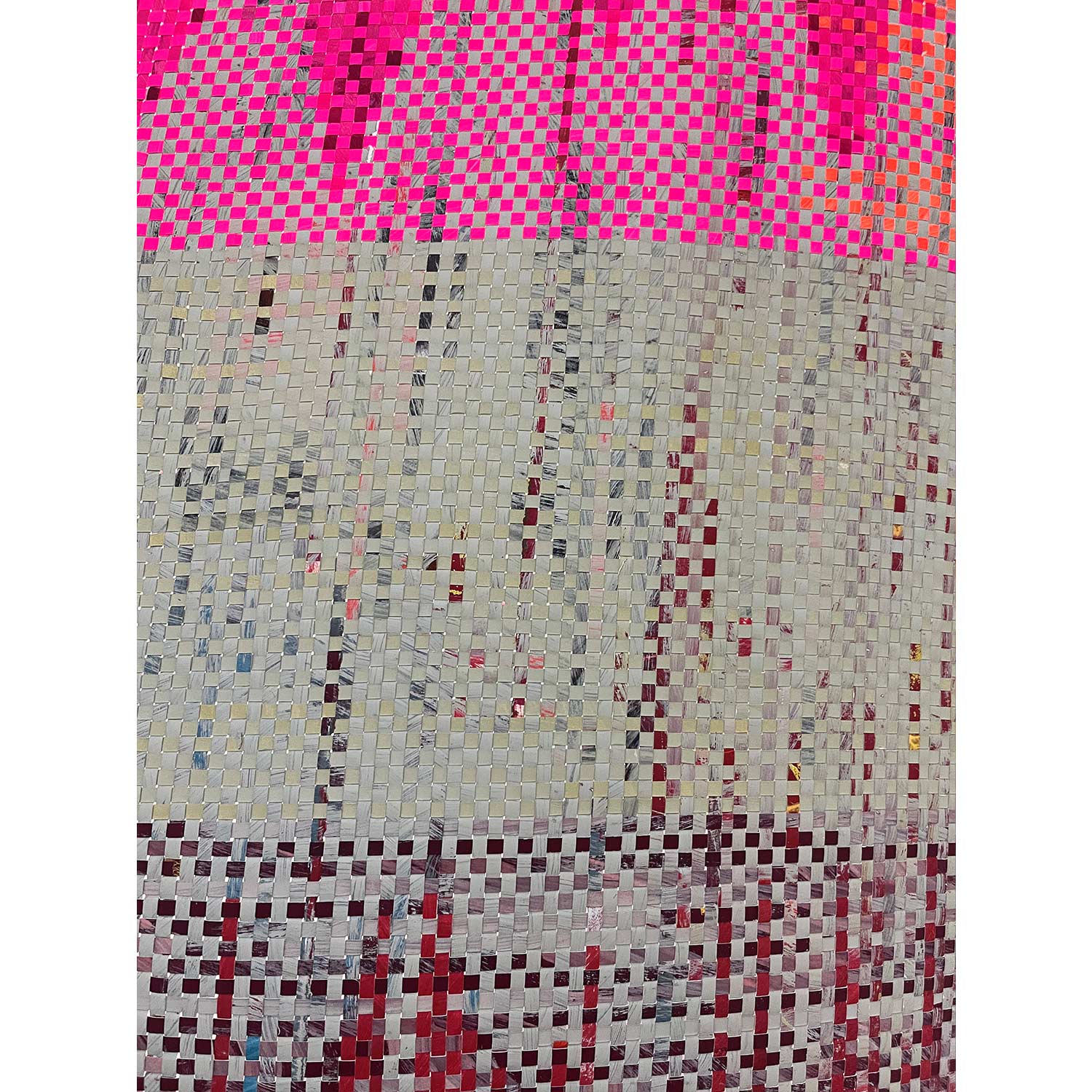 His weavings reflect his heritage, but also serve as expanded commentary on indigenous traditions. The diligence and rigorous devotion of the artist becomes the reflective route to approach notions of vastness. In his Papel Tejido (Woven Paper) body of work, Lorenzo takes simple, flat materials—paper and paint—and transforms them into sculptural textiles. He begins with blank sheets of paper, which he paints on both sides with figurative or non-representational imagery. He then painstakingly weaves the double-sided slips of paper by hand, drawing on traditions of basket weaving, Scottish tartan design, and abstract painting. The resulting piece has two faces, urging the viewer to behold it in the round as a sculpture. Lorenzo uses the most elemental form of weaving, recognizing its prepresence in different communities worldwide as an expression of universality.