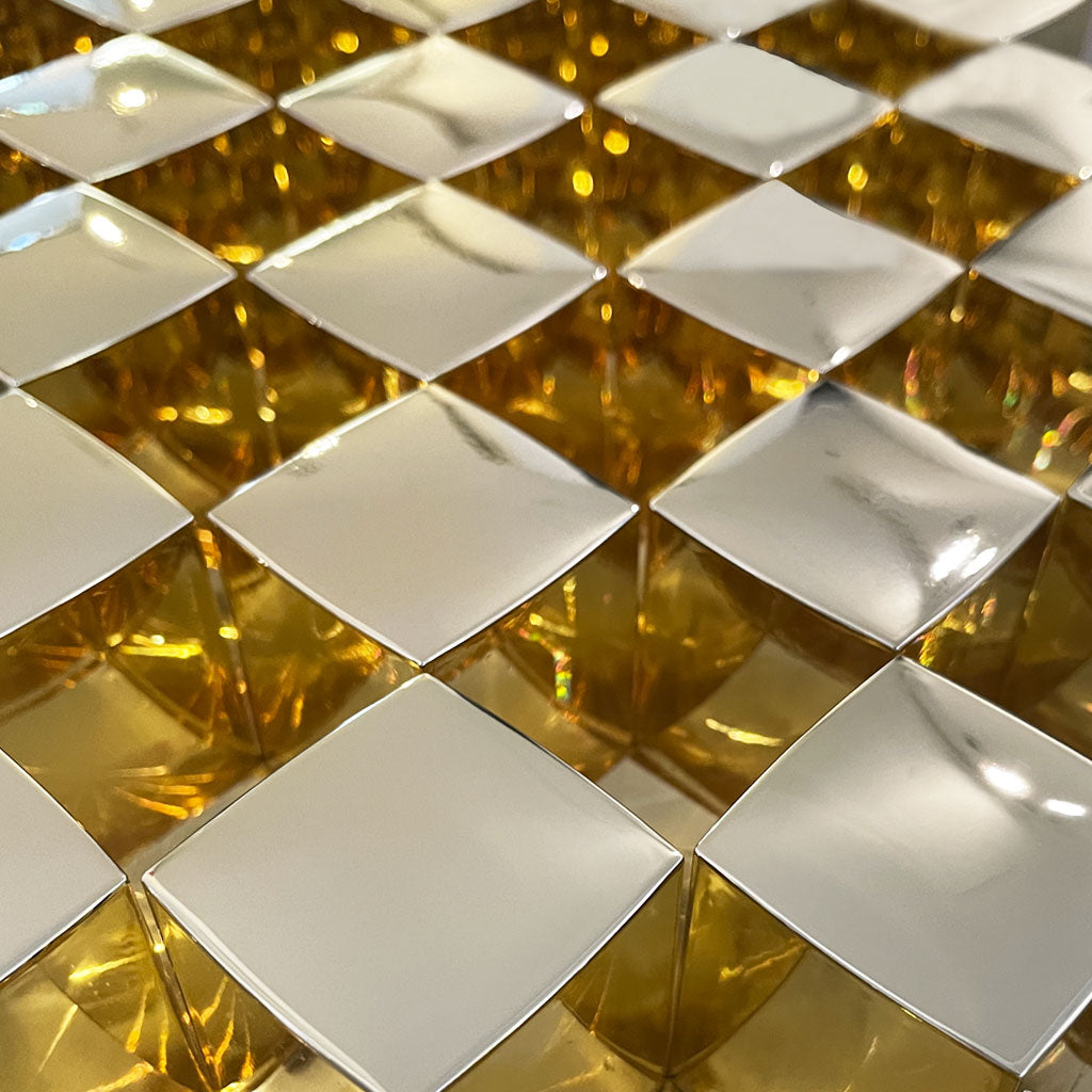 Medium: Gold leaf, gold-plated injection model, Korean traditional lacquer & hologram farbfilm on birch panel