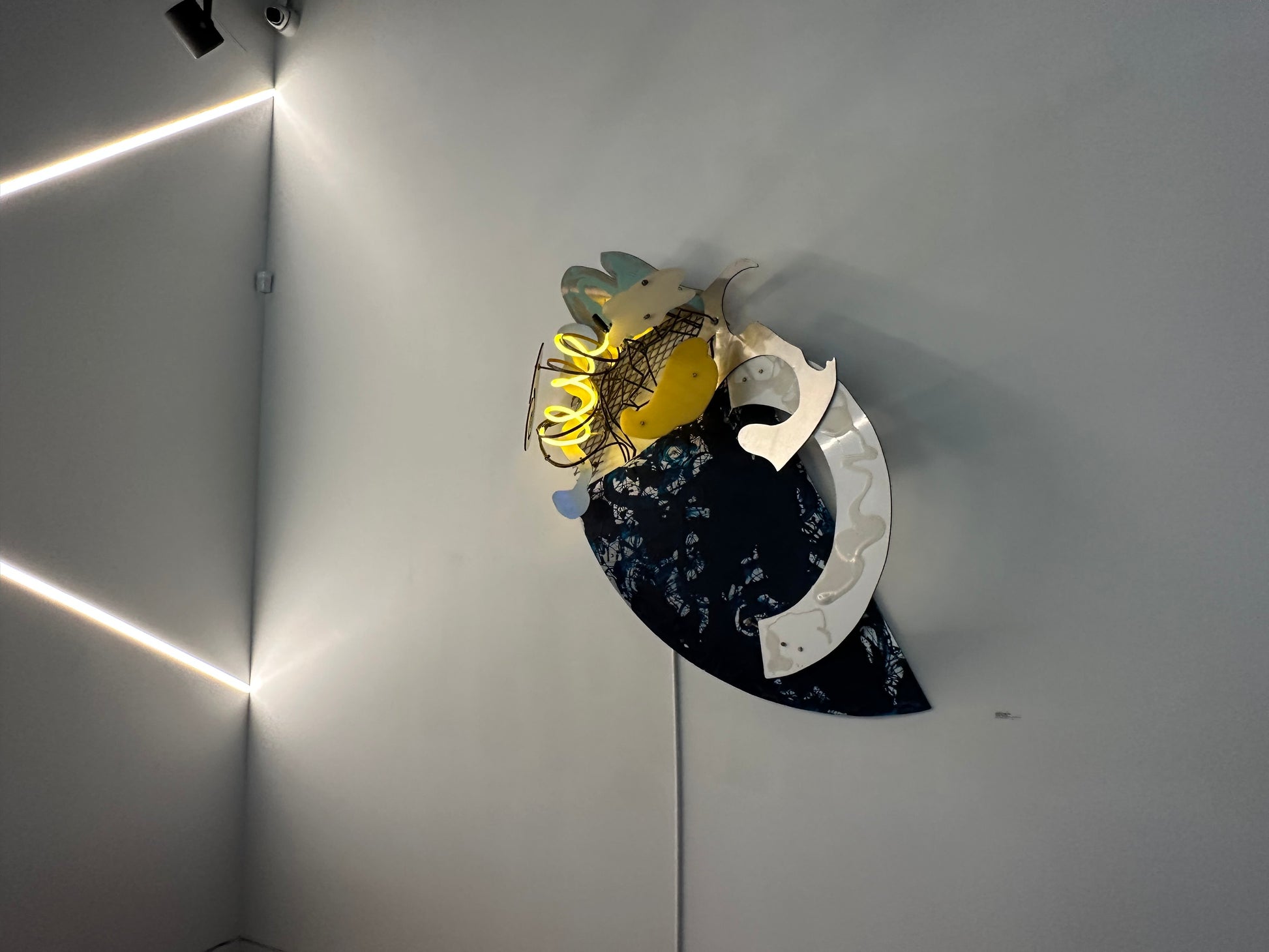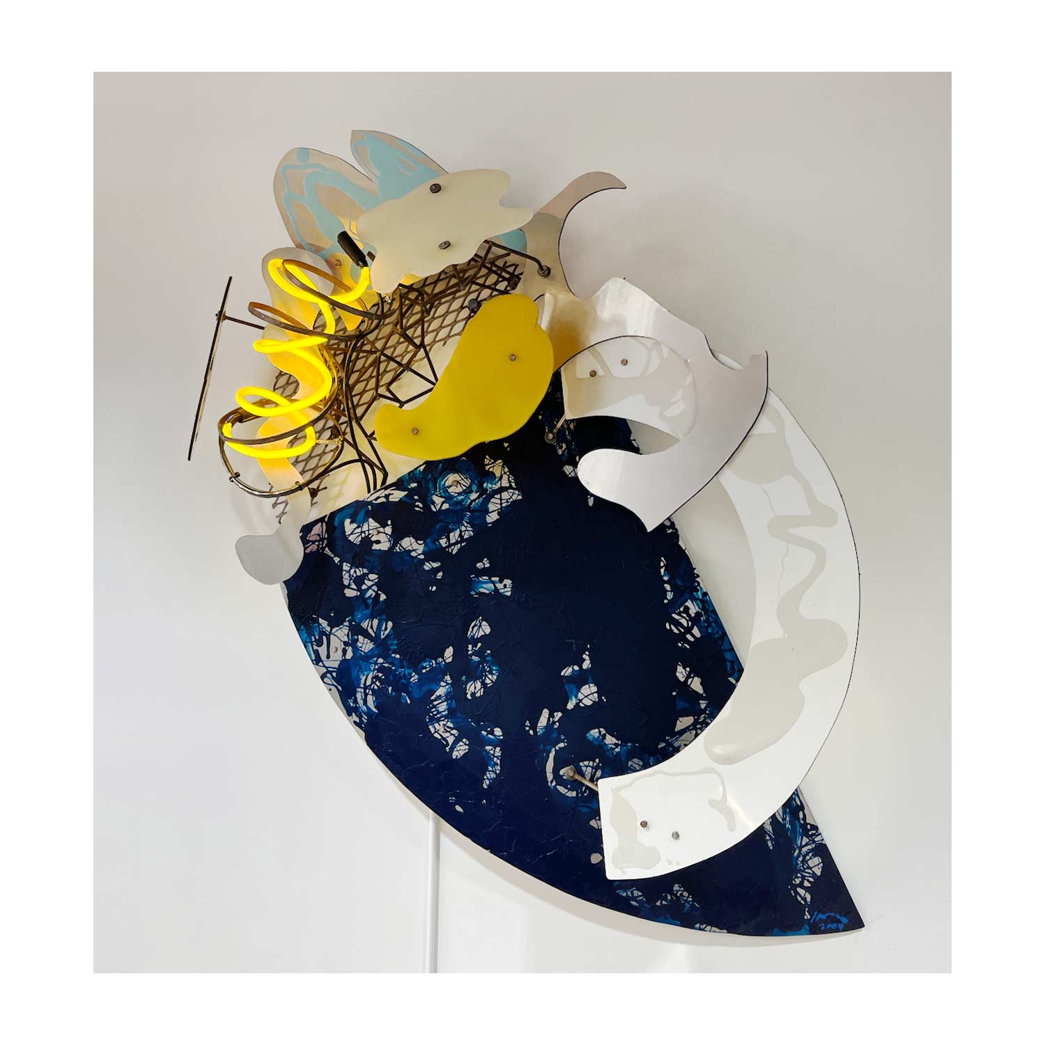 Medium: Metal, stainless steel, aluminum, oil paint, neon light