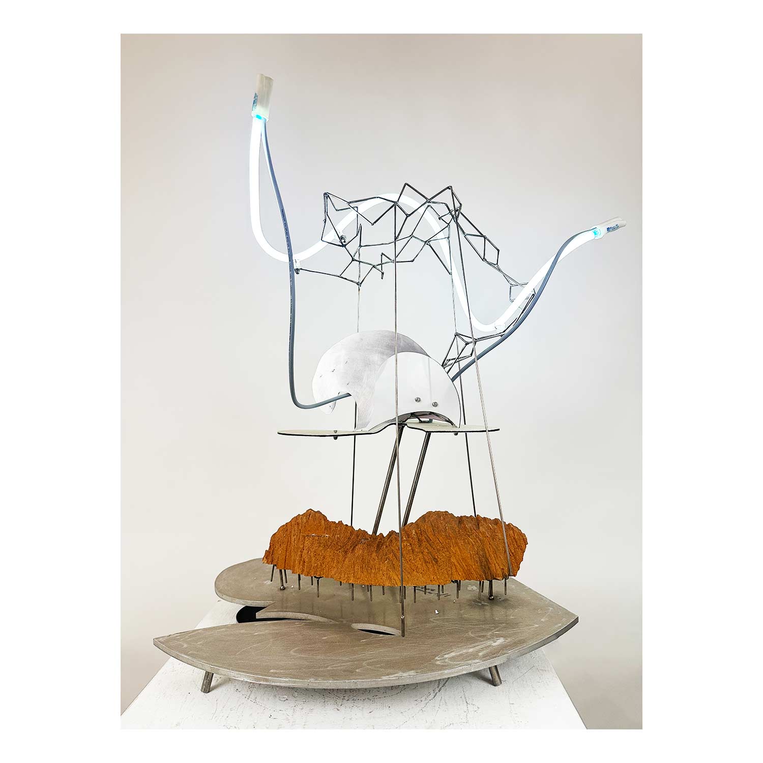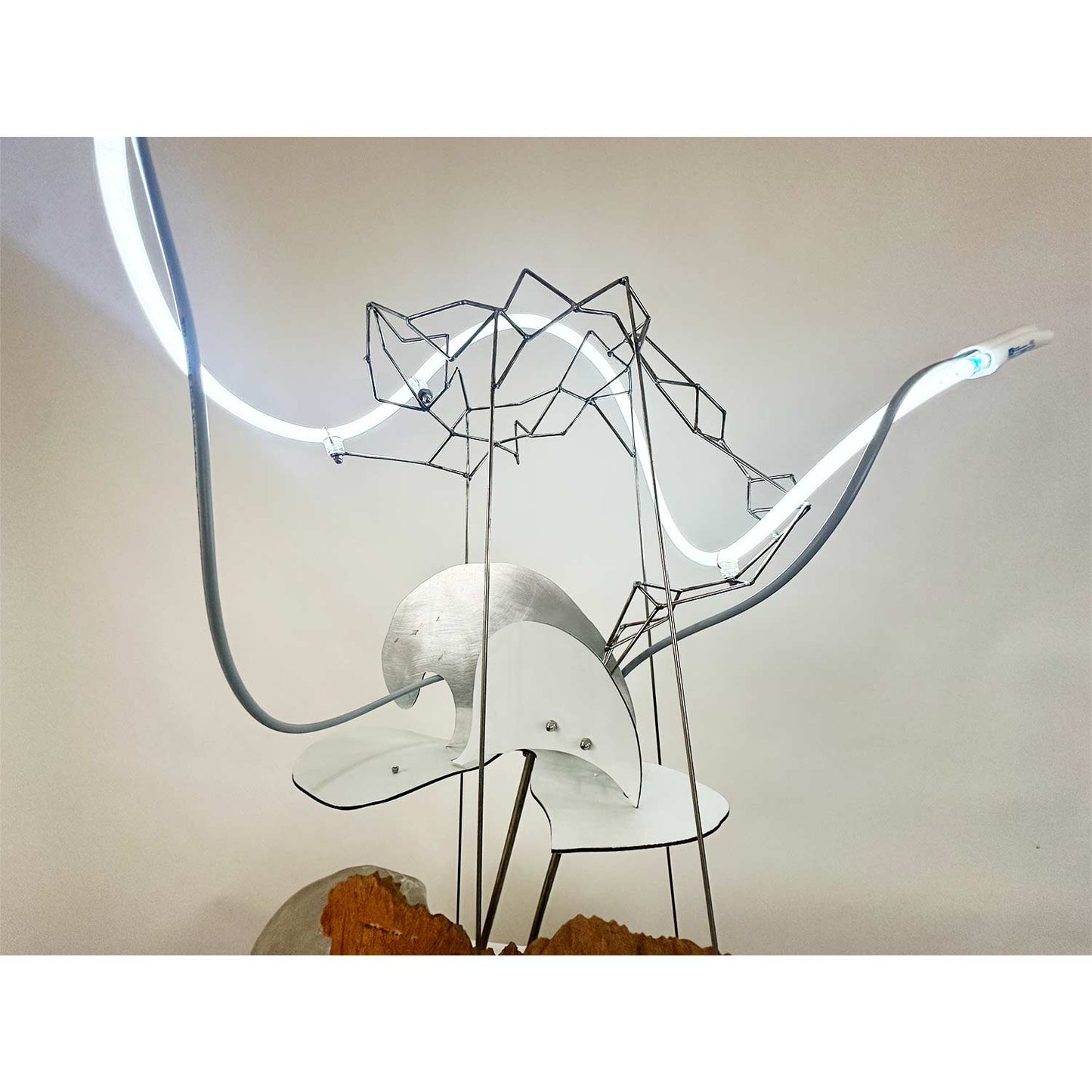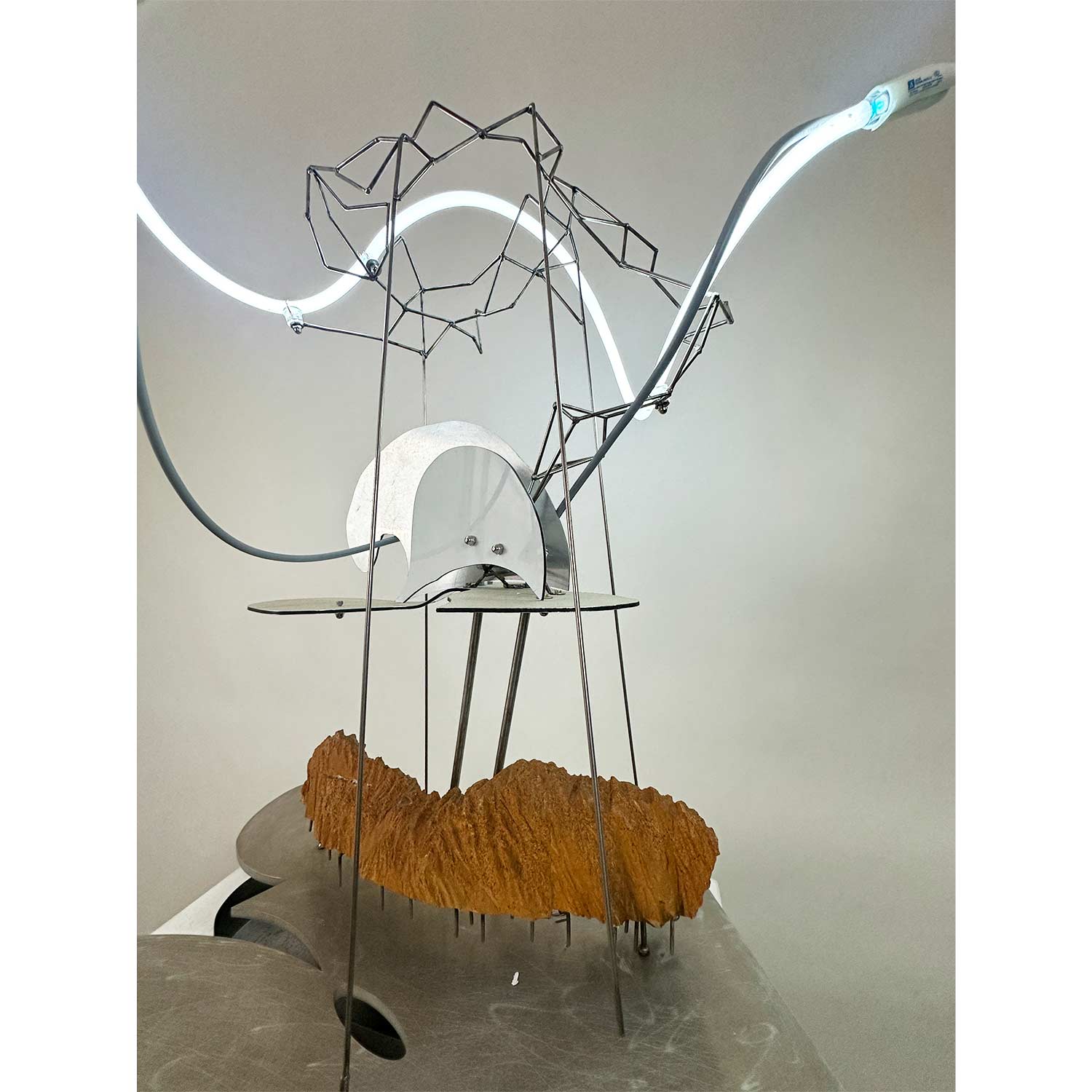 Medium: Metal, stainless steel, enamel paint, rock, neon light