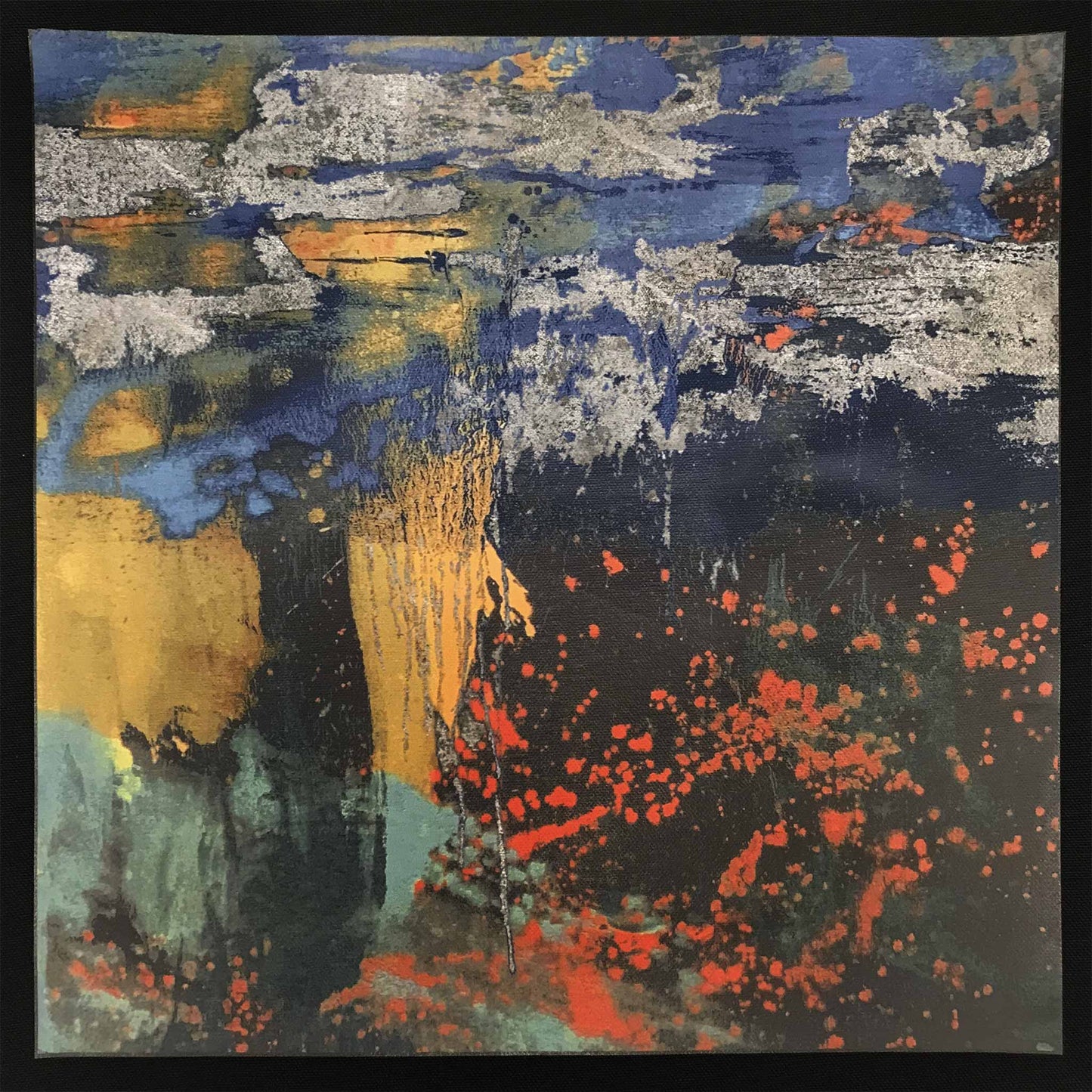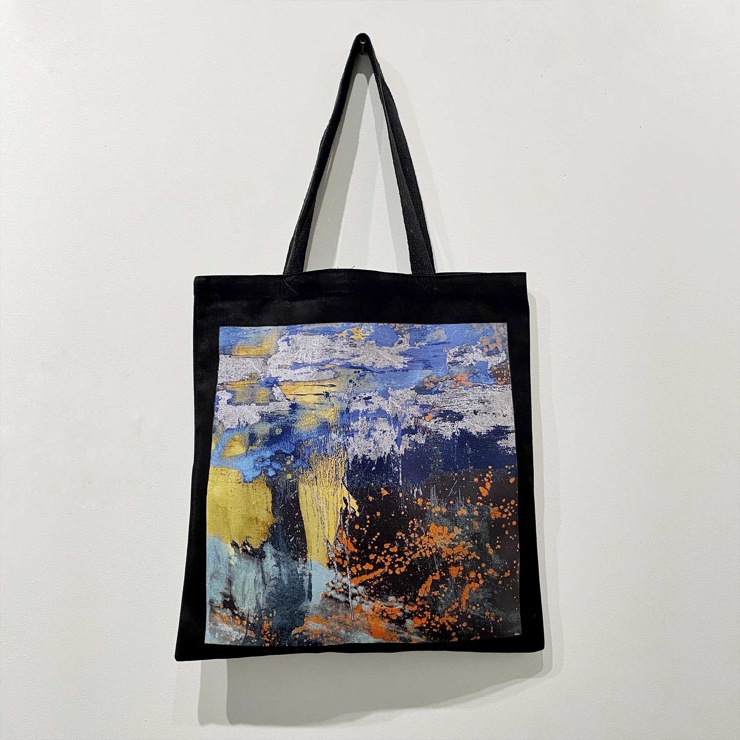 Waterfall Tote Bag with a print of Charis-Kairos by Makoto Fujimura. The image of an artwork is with an edition of 'silver tears'.